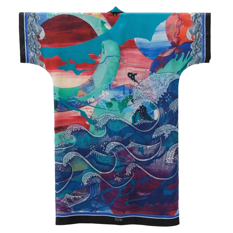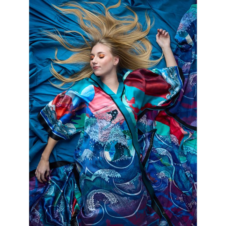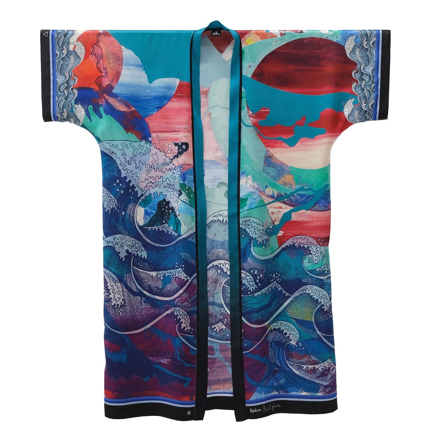 Kimonos och Scarves i kollektion ”De fyra elementen” är ett samarbete med konstnären Astrid Sylwan. Astrids abstrakta tolkningar av elementen gifter ihop sig med Karolines Beritdotter Lenhults figurativa illustrationer och mönster på ett briljant vis. En färgfest av väl avvägda kombinationer som speglar elementen jord, luft, vatten och elds unika karaktärer.