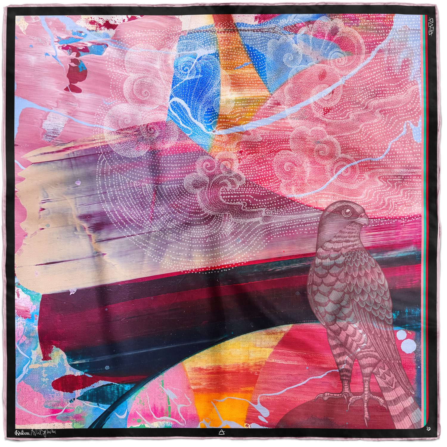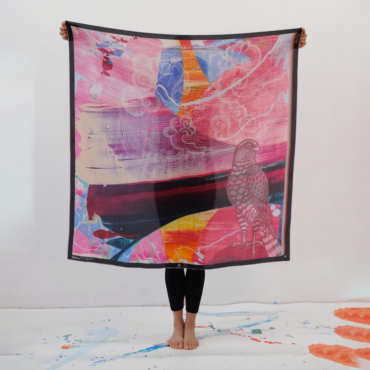 Kimonos och Scarves i kollektion ”De fyra elementen” är ett samarbete med konstnären Astrid Sylwan. Astrids abstrakta tolkningar av elementen gifter ihop sig med Karolines Beritdotter Lenhults figurativa illustrationer och mönster på ett briljant vis. En färgfest av väl avvägda kombinationer som speglar elementen jord, luft, vatten och elds unika karaktärer.