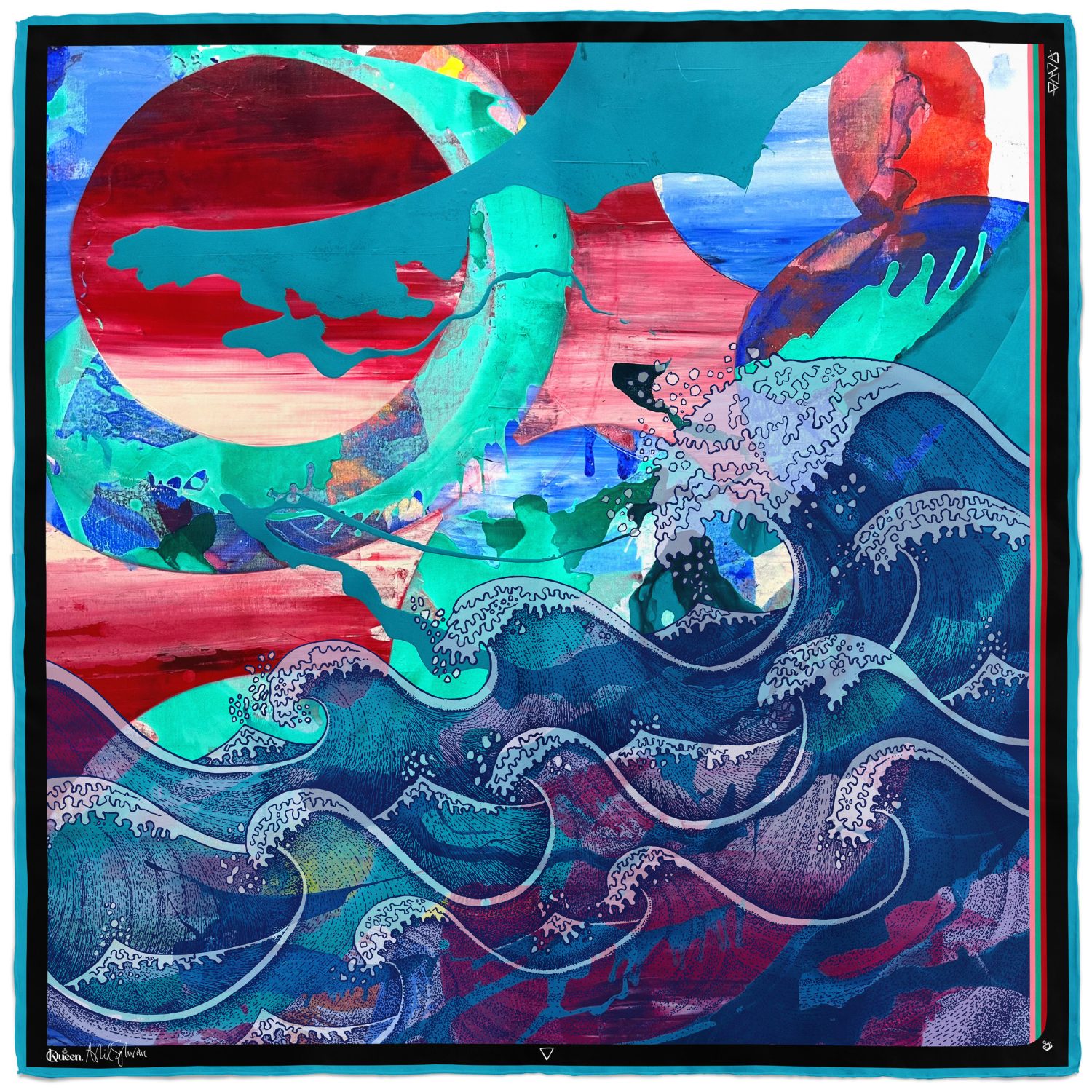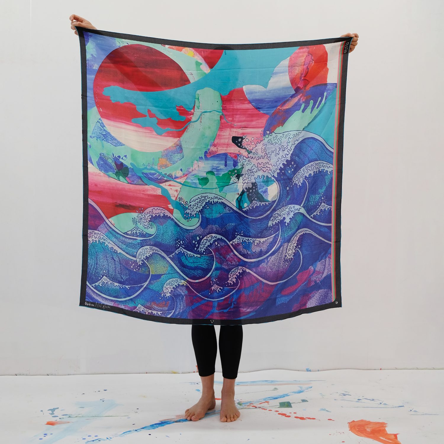 Kimonos och Scarves i kollektion ”De fyra elementen” är ett samarbete med konstnären Astrid Sylwan. Astrids abstrakta tolkningar av elementen gifter ihop sig med Karolines Beritdotter Lenhults figurativa illustrationer och mönster på ett briljant vis. En färgfest av väl avvägda kombinationer som speglar elementen jord, luft, vatten och elds unika karaktärer.