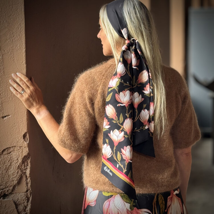 Varje scarf från Kueen kommer alltid i en unik ask. Asken kan bli en fin inredningsdetalj och som förvaring i ditt hem. Du kan förvara din scarf i den eller något annat du tycker om. I asken hittar du också en galge till din scarf. Häng upp den på en fin krok på väggen eller i din garderob. Scarfen håller sig alltid slät och fin när det är dags att sätta på sig den. Scarfen är gjord i 100% siden, så kemtvätt är såklart att föredra.