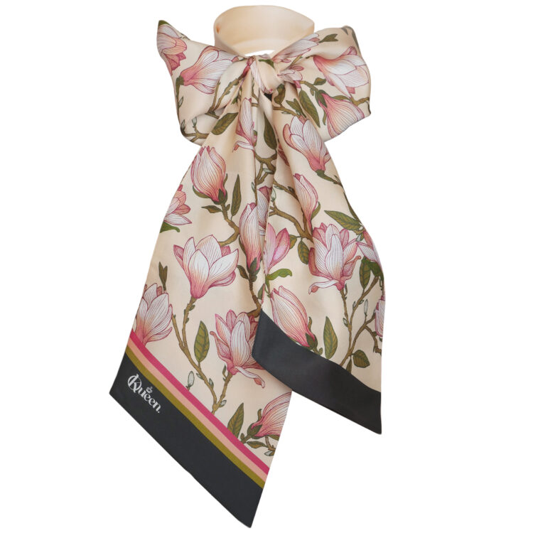 Varje scarf från Kueen kommer alltid i en unik ask. Asken kan bli en fin inredningsdetalj och som förvaring i ditt hem. Du kan förvara din scarf i den eller något annat du tycker om. I asken hittar du också en galge till din scarf. Häng upp den på en fin krok på väggen eller i din garderob. Scarfen håller sig alltid slät och fin när det är dags att sätta på sig den. Scarfen är gjord i 100% siden, så kemtvätt är såklart att föredra.